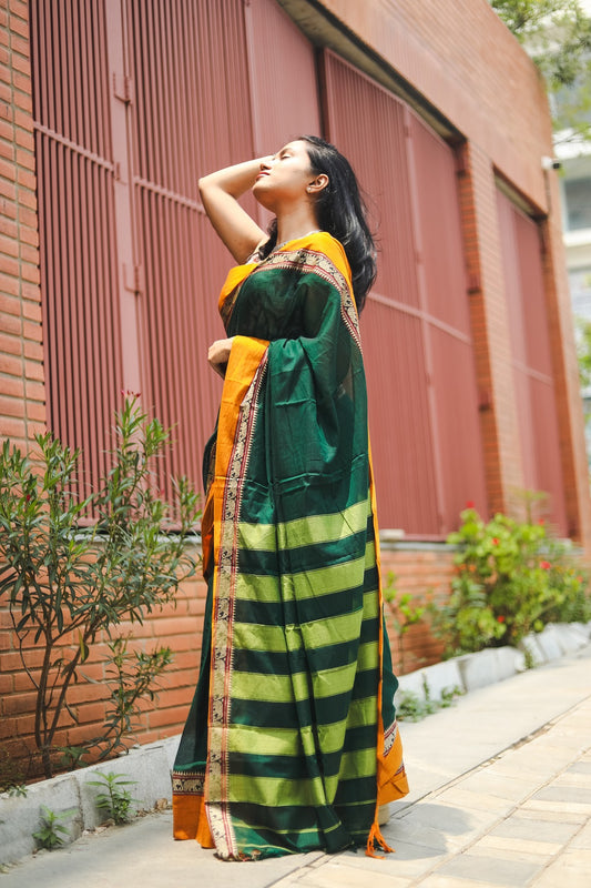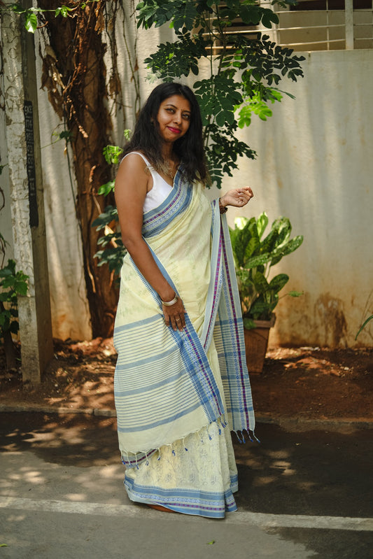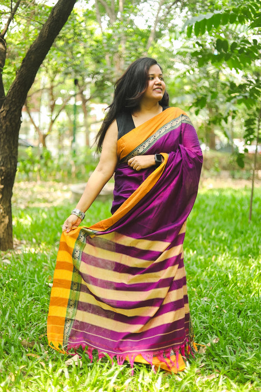 Ayra was born out of love for sarees and a desire to find sarees so comfortable that you can wear all day. With months of research and travel to different parts of southern India, we found the right natural fabrics for the collection. We have combined traditional fabrics and weaves with modern day sensibilities. Sustainable fabrics, comfort and style are the three words we would use to describe the sarees from Ayra.