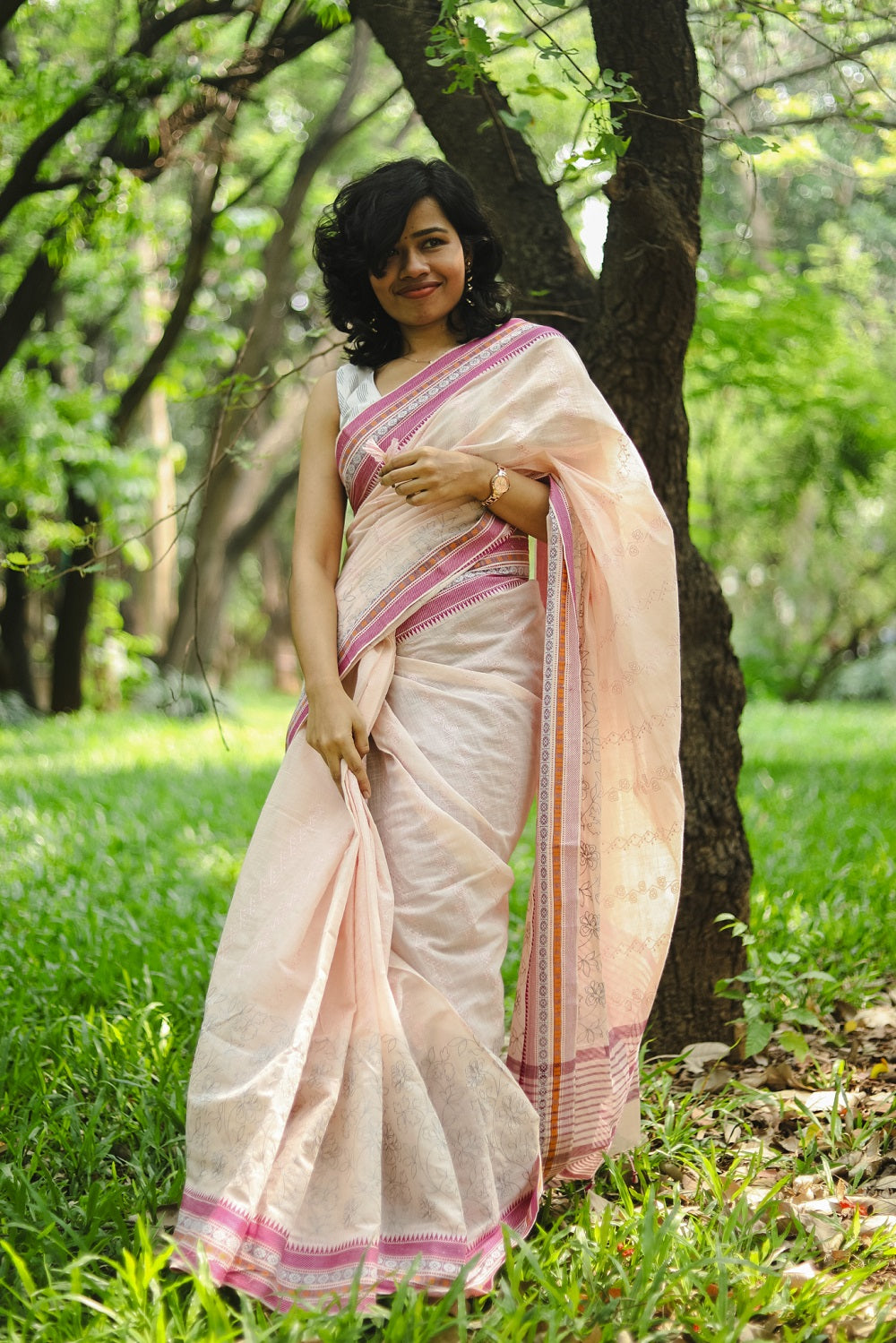 Fabric feel: This is a pure cotton saree that is mildly starched and provides the volume to the saree.